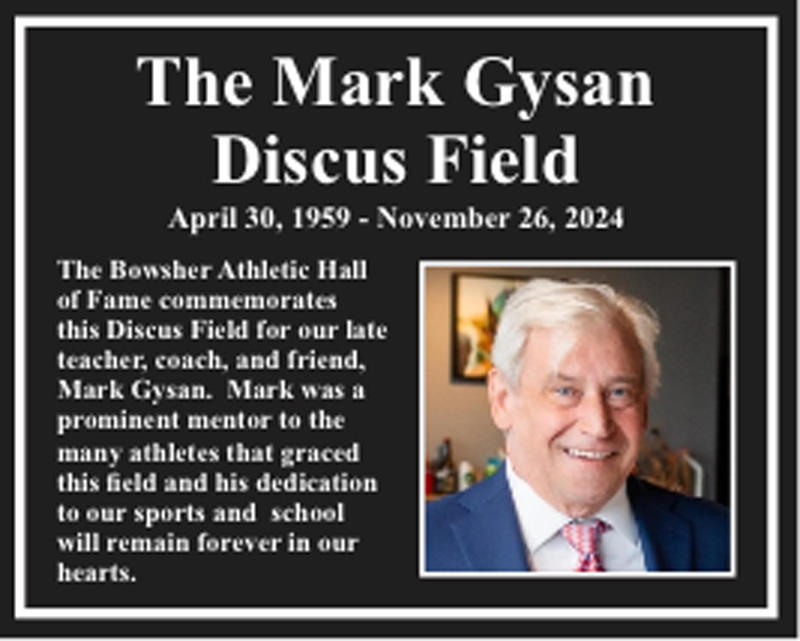 Mark Gysan, beloved coach and mentor, passed away as a member of the Bowsher Athletic Hall of Fame and we are excited to share the name of the Bowsher Discus Field will be in his honor
